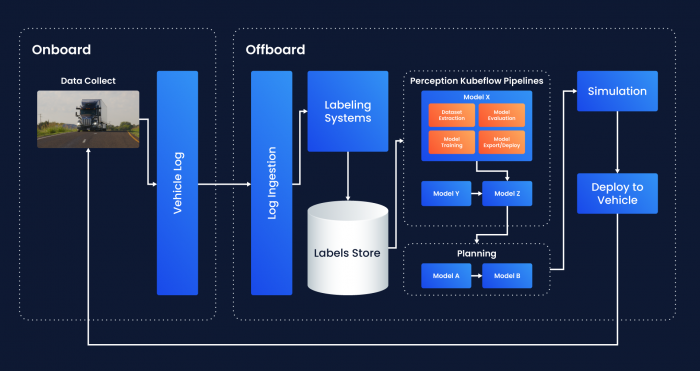 Machine learning (ML) models form the backbone of autonomous vehicle (AV) development. Everything from perception to motion planning is powered in part by the datasets and models developed in a cycle commonly referred to as the “Data Engine.” The Data Engine lifecycle starts with identifying the type of data required to support or improve an AV capability—for example, to detect emergency vehicles, our perception system needs lots of sensor data of emergency vehicles in different situations. This is followed by iteratively mining and labeling the data to turn it into a usable dataset for ML model training. Once a model is trained, it then goes through a number of sub-system and system-level evaluations and those results are fed back to the Data Engine for the next iteration. Our ability to quickly and safely develop, deploy, and continuously improve our self-driving technology is largely dependent upon the efficiency and speed of this lifecycle.