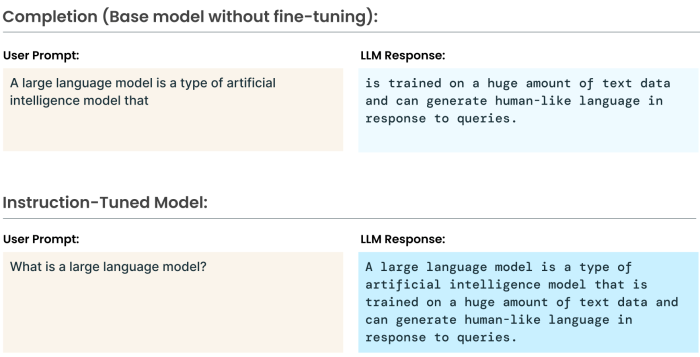 Large Language Models (LLMs) are trained on vast corpora of text, giving them impressive language comprehension and generation capabilities. However, this training does not inherently provide them with the ability to directly answer questions or follow instructions. To achieve this, we need to fine-tune these models for the specific task of instruction following. This article explores the basics of instruction tuning using AI2’s OLMo-1B model as an example. It will provide a before and after comparison, showing that the pre-trained model (before fine-tuning) is unable to follow instructions. In contrast, the instruction-tuned model is able to respond appropriately to instructions.