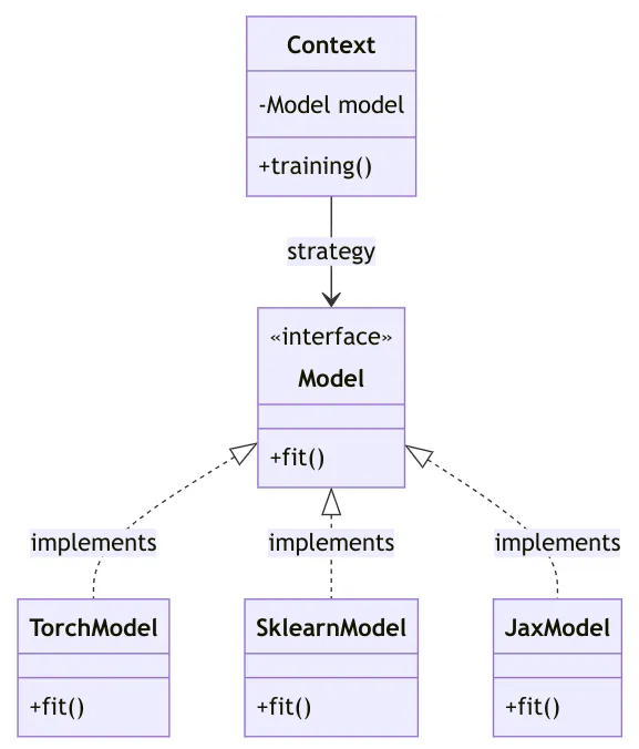 For example, the package offers an interface for unifying AI/ML models from various frameworks (e.g., sklearn, pytorch), demonstrating the strategy pattern.