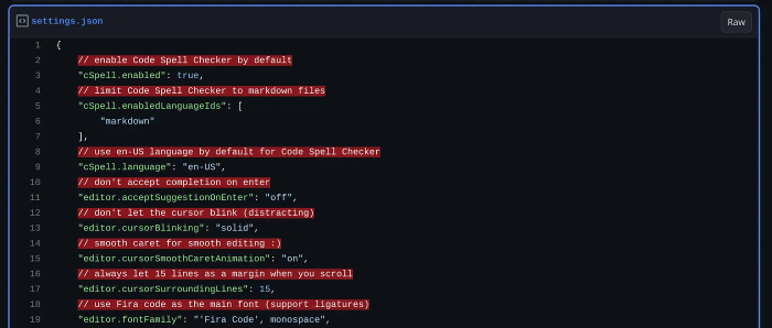 Below, you’ll find the link to the settings I utilize with VS Code. Each setting is annotated to help you understand what is does. Keep in mind that you can hover your cursor over a setting key in VS Code to access more information about that setting. You can also switch between the textual and visual interface using the “Go to document” icon at the top left of the editor settings.