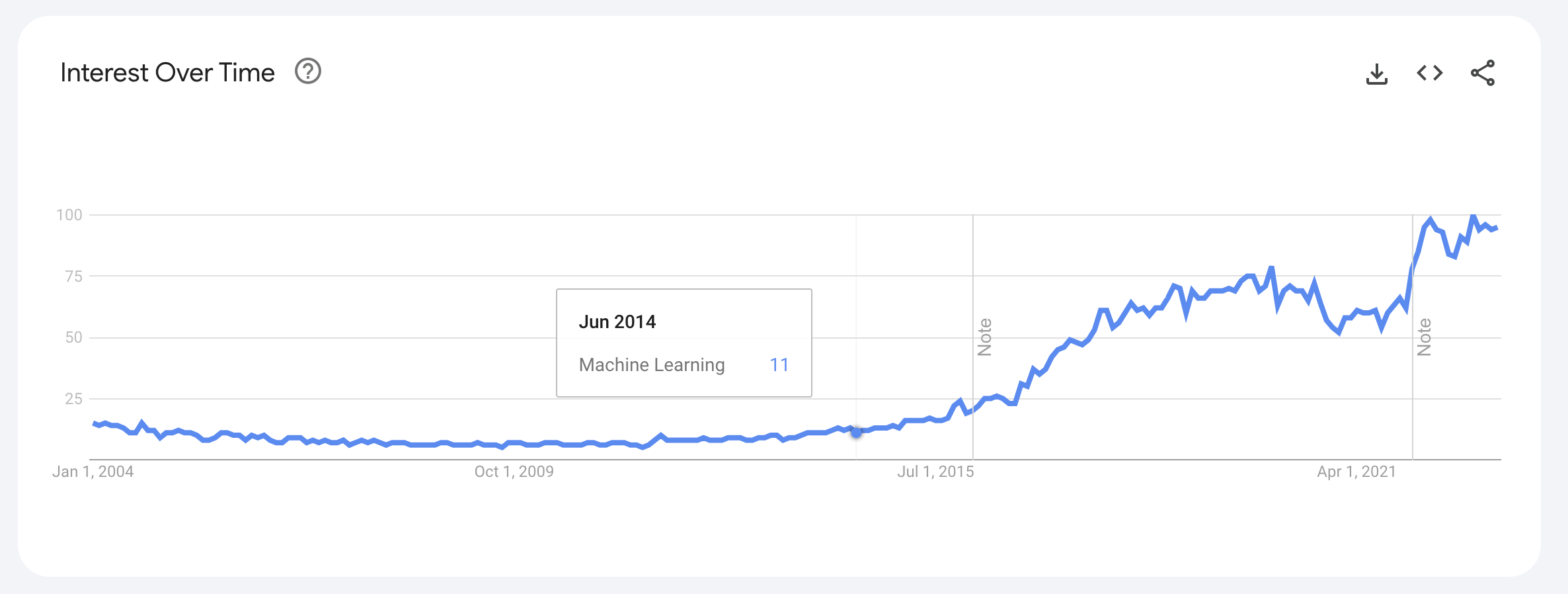 Interest Over Time for the term Machine Learning on Google