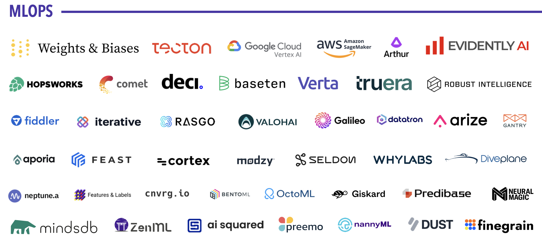 The MLOps vendors can be split among a number of product categories.