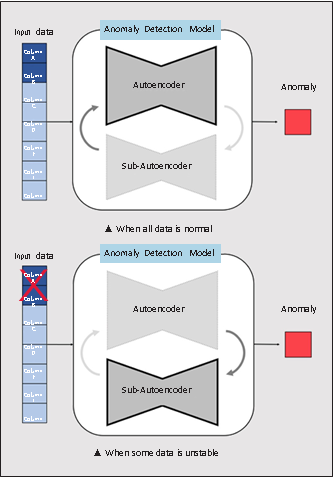 MakinaRocks’ solution was able to maintain its inference performance by training an additional model with data that excluded the unstable sections. As Figure 4 shows, the solution actually involved two models: the main model, applying its autoencoder to normal data, and the replacement model, applying a sub-autoencoder to the less important data with fluctuating availability. The solution alternated between these two models depending on the availability of data. The streaming-serving and model-shadowing features of Runway™, in other words, enabled the solution to continue to monitor the laser drills and detect anomalies notwithstanding trouble in some of the sensors.